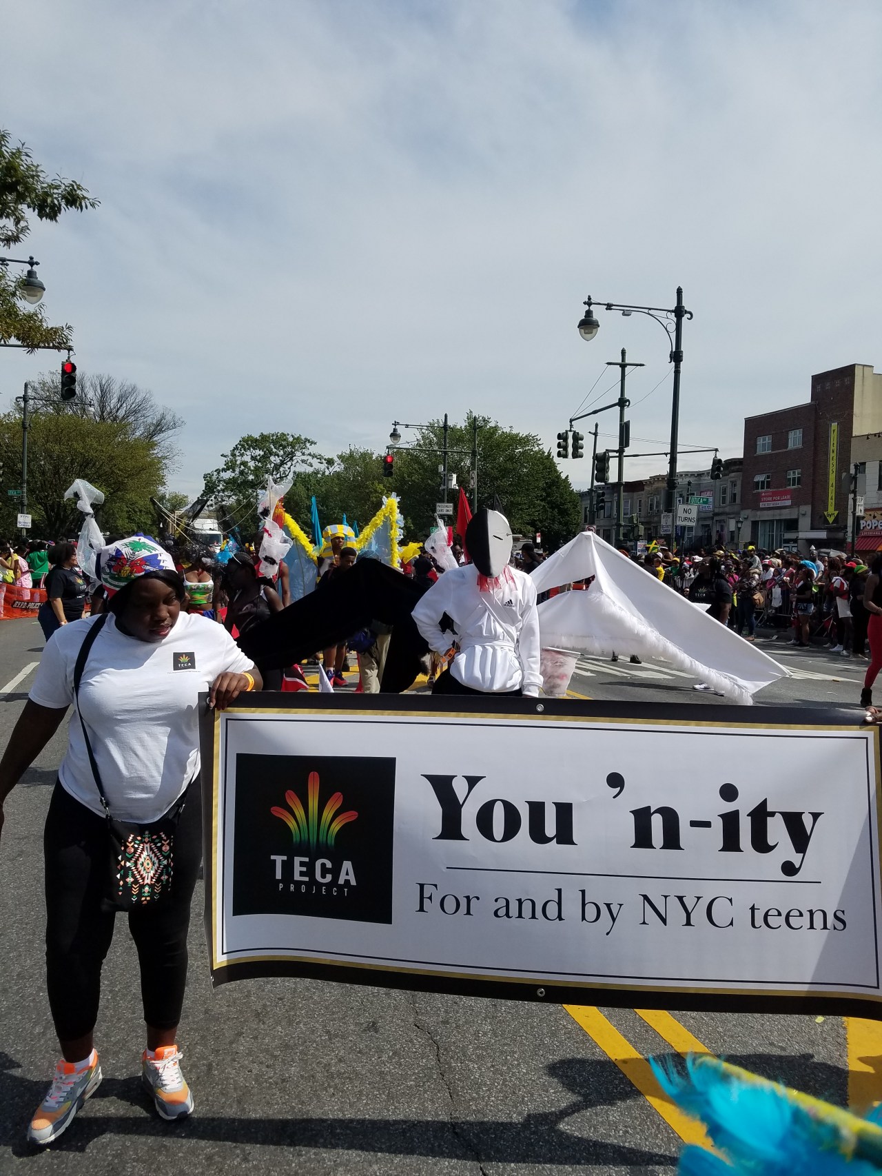 And so knowing what teens are capable of, I embarked this summer on a project based out of a community arts organization in East New York Brooklyn, called Arts East NY. I called it the TECA Project: Teen Empowerment Through Carnival Arts (TECA). Doing this project stemmed from my restlessness, wanting to work directly with teens again, wanting to connect artistically and professionally with my culture, wanting to challenge the trend of commercial mas making and wanting to provide a place for teens to participate in their culture rather than watch it go by.